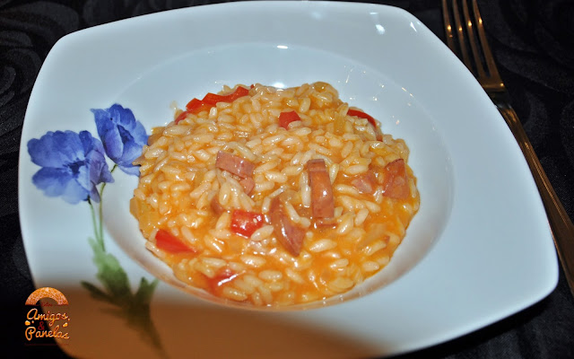 Foi um final de semana de muitas comidas e bebidas, visto o mal tempo em Santa Catarina. Como fizemos muitas receitas que estão no blog a pedido deles, a Sabrina exigiu uma receita exclusiva para ela. O Ronaldo então, as 3:00 da madrugada, após voltarmos de uma festa em Balneário Camboriú fez este risoto para a Sabrina. Madrugada ou não, sendo receita do Ronaldo, é claro que tinha que ser algo gastronômico. A foto não saiu grande coisa porque eram altas horas e alguns drinques tomados na festa já haviam tirado os critérios fotográficos, mas, o risoto estava delicioso e não sobrou nada!